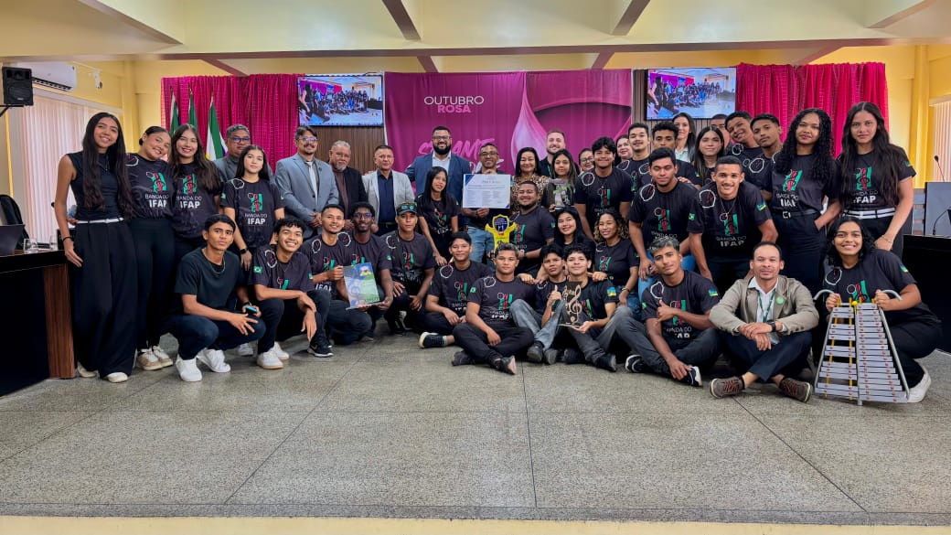 Na manhã desta sexta-feira, 10 de outubro de 2025, a banda marcial Campus Laranjal do Jari do Instituto Federal do Amapá (Ifap) foi homenageada pela Câmara Municipal de Laranjal do Jari com uma Moção de Aplausos. A homenagem reconheceu o importante trabalho educacional e social desenvolvido pelo projeto, que utiliza a arte e a música como instrumentos de formação cidadã e inclusão.